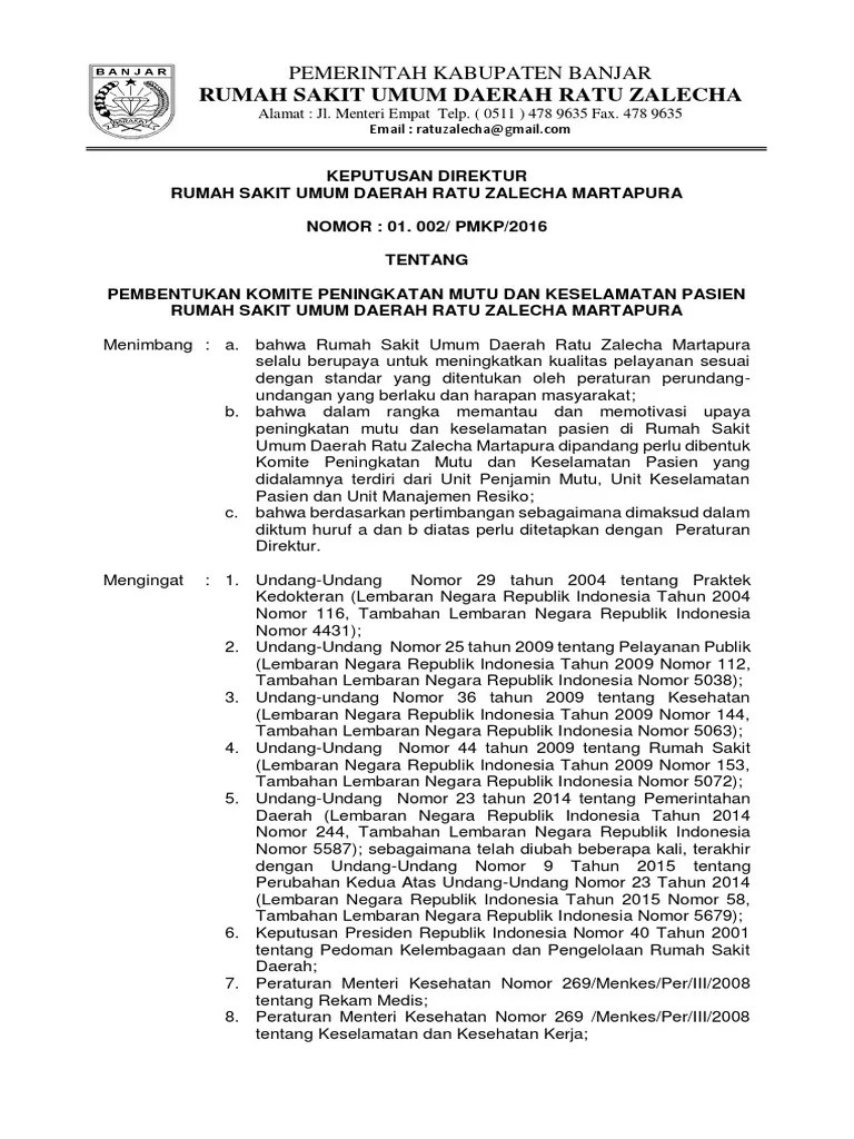 Update 10 desember 2020 definisi komite mutu adalah unsur organisasi non struktural yang membantu kepala atau direktur rumah sakit dalam mengelola dan memandu program peningkatan mutu dan keselamatan pasien, serta mempertahankan standar pelayanan rumah sakit.setiap rumah sakit wajib menyelenggarakan tata kelola mutu, tata kelola mutu dilakukan untuk meningkatkan mutu rumah sakit dan. tim nusantara sehat di puskesmas waer, kecamatan banda. Pelaksanaan penjaminan mutu bidang pendidikan gmp melaksanakan review rps dan soal ujian. 3000 file sk, pedoman, panduan, kak, sop, & Perubahan keputusan dekan fakultas matematika dan ilmu pengetahuan alam kesatu.